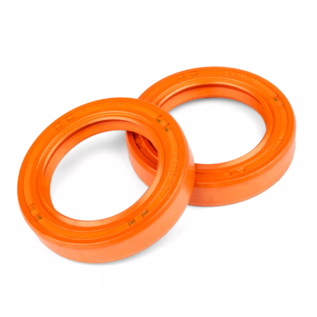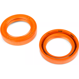 High-performance FKM crankshaft oil seals from Stage6 R/T in signature orange. Designed for Piaggio and Gilera 125–180cc 2-stroke engines. Low friction, long lifespan, and resistant to fuel and high temperatures.