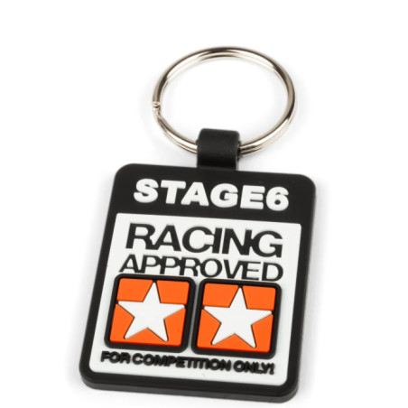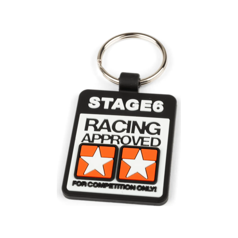 Stylish Stage6 key ring made of soft rubber featuring the classic two-star logo and “Racing Approved” text. Great for keys, bags or helmets.