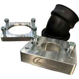Kit d'adaptateur d'admission de Heiko Tuning qui va avec l'adaptateur HT Vforce 4. Il s'installe tout droit vers l'arrière. Il s'adapte parfaitement sur la Gilera Runner sans avoir besoin de bidouiller, mais sur une Zip d'Piaggio, il faut enlever un petit bout de ton buddy (ça dépend de la taille de ton carburateur). Ce kit marche avec l'o.a., l'Keihin,...