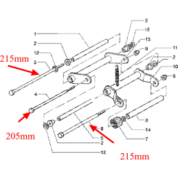 Boulon de sous-châssis pour Gilera Runner 125-180cc 2t sous-châssis. Le sous-châssis a deux boulons, un court et un long (205 mm et 215 mm). Celui-ci est le boulon de 205 mm.
