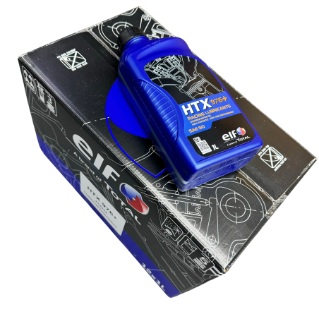 Pack avantageux d'huile HTX 976 RACE d'Elf. Boîte de 12 bouteilles de 1 litre chacune. (Normalement 347,88 par BOÎTE, maintenant à 299,99 par BOÎTE)