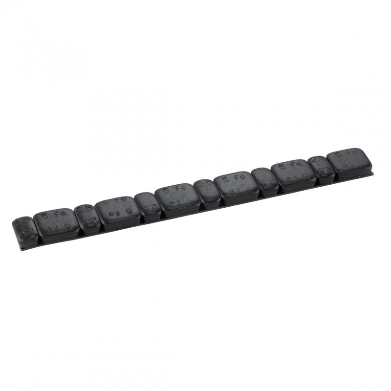 Le plomb adhésif colle direct dès que tu le colles sur ta jante. Pratique et facile à utiliser. Le poids total d'une bande complète est de 60 grammes, dont 6 x 5 grammes et 6 x 2,5 grammes.