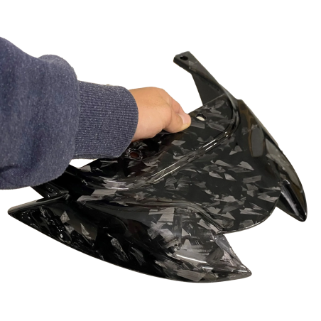 Améliore ton Zip SP d'Piaggios avec notre garde-boue en carbone forgé fait main. Ce garde-boue unique donne un look sportif à ton scooter et est bien plus léger que le modèle standard. Il est fait de fibre de carbone forgé de haute qualité pour une durabilité optimale.