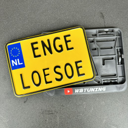 Attention : cette plaque d'immatriculation est juste pour un usage privé sur ton propre terrain, pendant des réunions ou des salons. Ce n'est pas une plaque d'immatriculation officielle approuvée par le RDW et on n'est pas responsables de son utilisation sur la voie publique.
