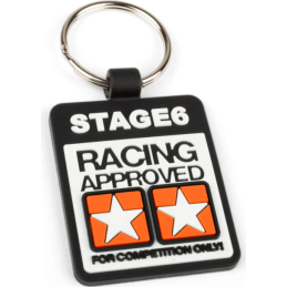 Super porte-clés Stage6 en caoutchouc souple avec le célèbre logo à deux étoiles et le texte « Racing Approved ». Parfait pour tes clés, ton scooter, ton casque ou ton sac à dos.