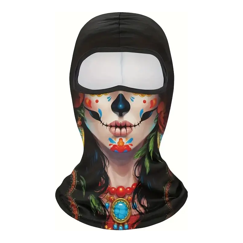 Prêt à affronter le froid de l'hiver avec une touche d'humour un peu glauque ? Notre cagoule avec le fantôme du Mexique, c'est le top pour être chaud et stylé. Montre que même quand il fait super froid, tu gardes ton humour. Elle est aussi cool à porter avec un casque intégral, un casque boxer ou un autre casque.